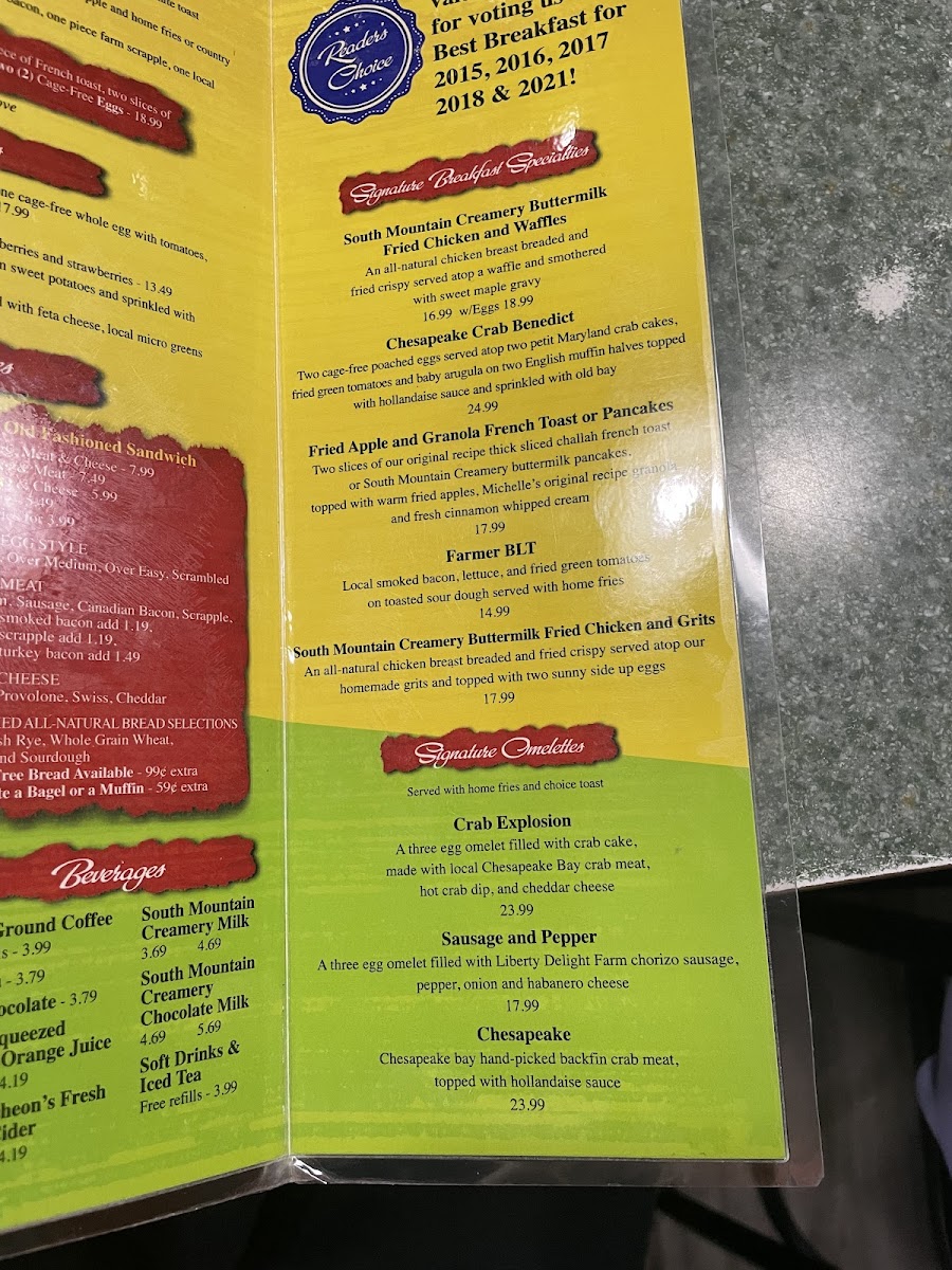 Breakfast options are a highlight, with signature dishes like the Chesapeake Benedict—a delightful combination of crab cakes and fried green tomatoes atop cage-free eggs, complemented by homemade grits or country potatoes. The Farmer BLT, featuring local smoked bacon and fresh fried green tomatoes, is a must-try.