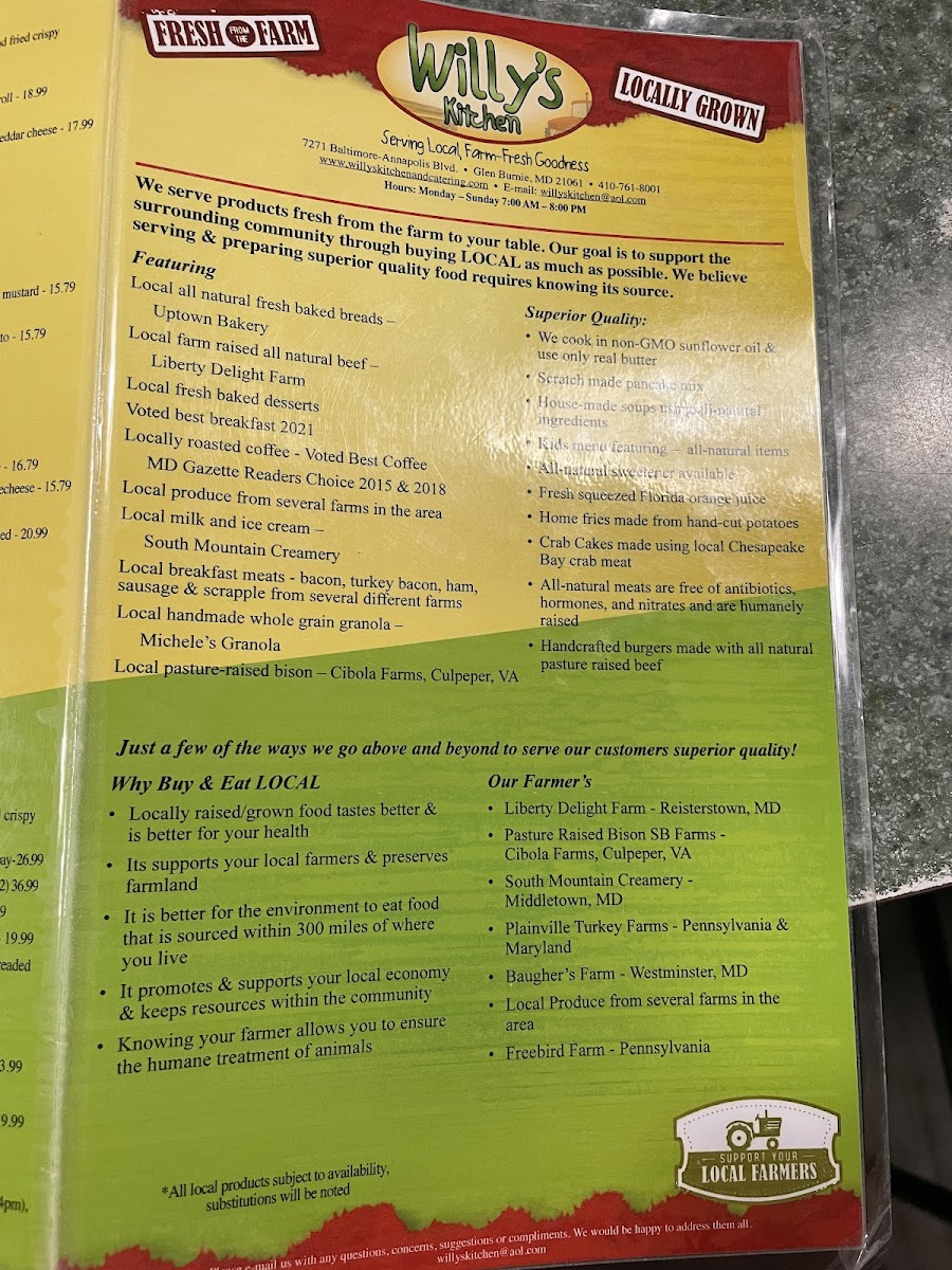 Willy's Kitchen Menu